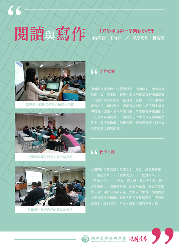 閱讀與寫作 授課教師:王詩萍老師/教學助理:楊皓茨